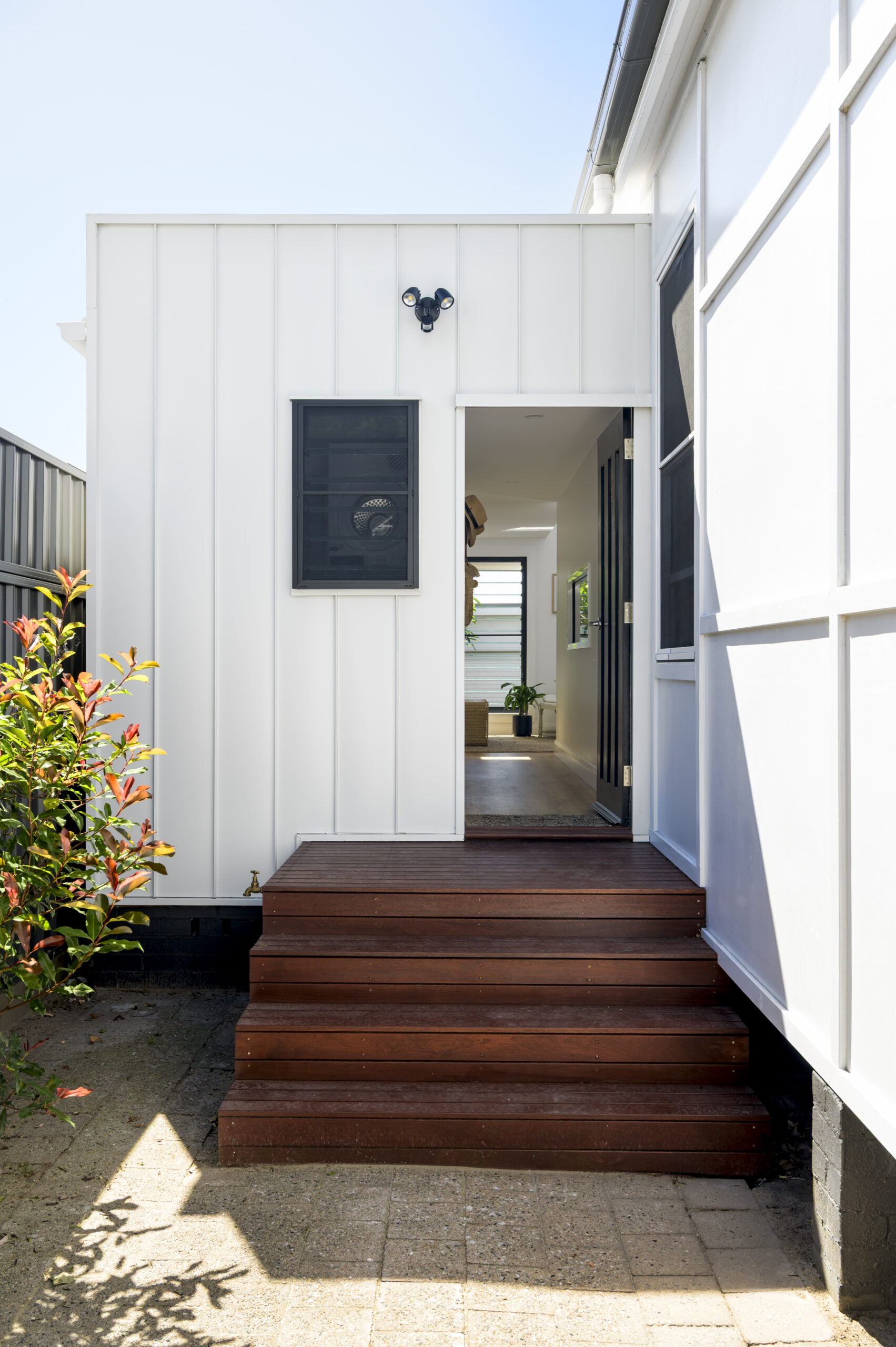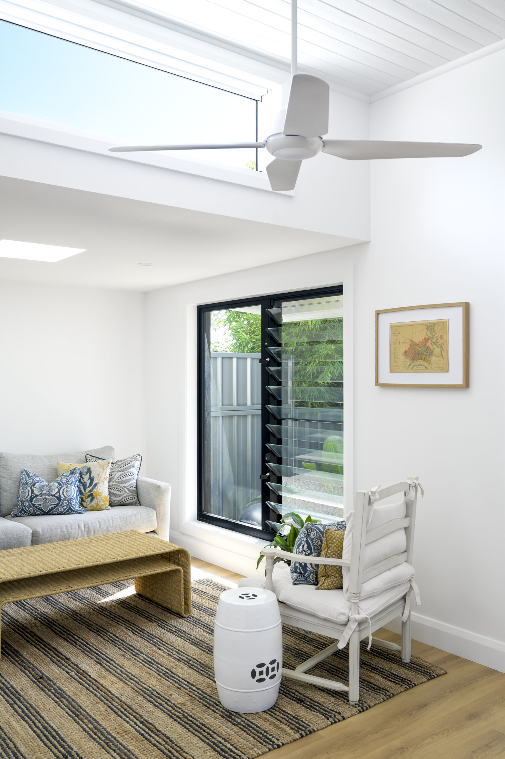 This project involved a small side extension that allowed us to add a new bathroom and laundry while also increasing the clients’ living space. Once the new rooms were complete, we removed the original bathroom to create a wider passageway and a more open, functional living area. Alongside the extension we introduced new windows, doors and skylights to flood the interiors with natural light. The result is a brighter, more functional space that connects beautifully to the outdoors.